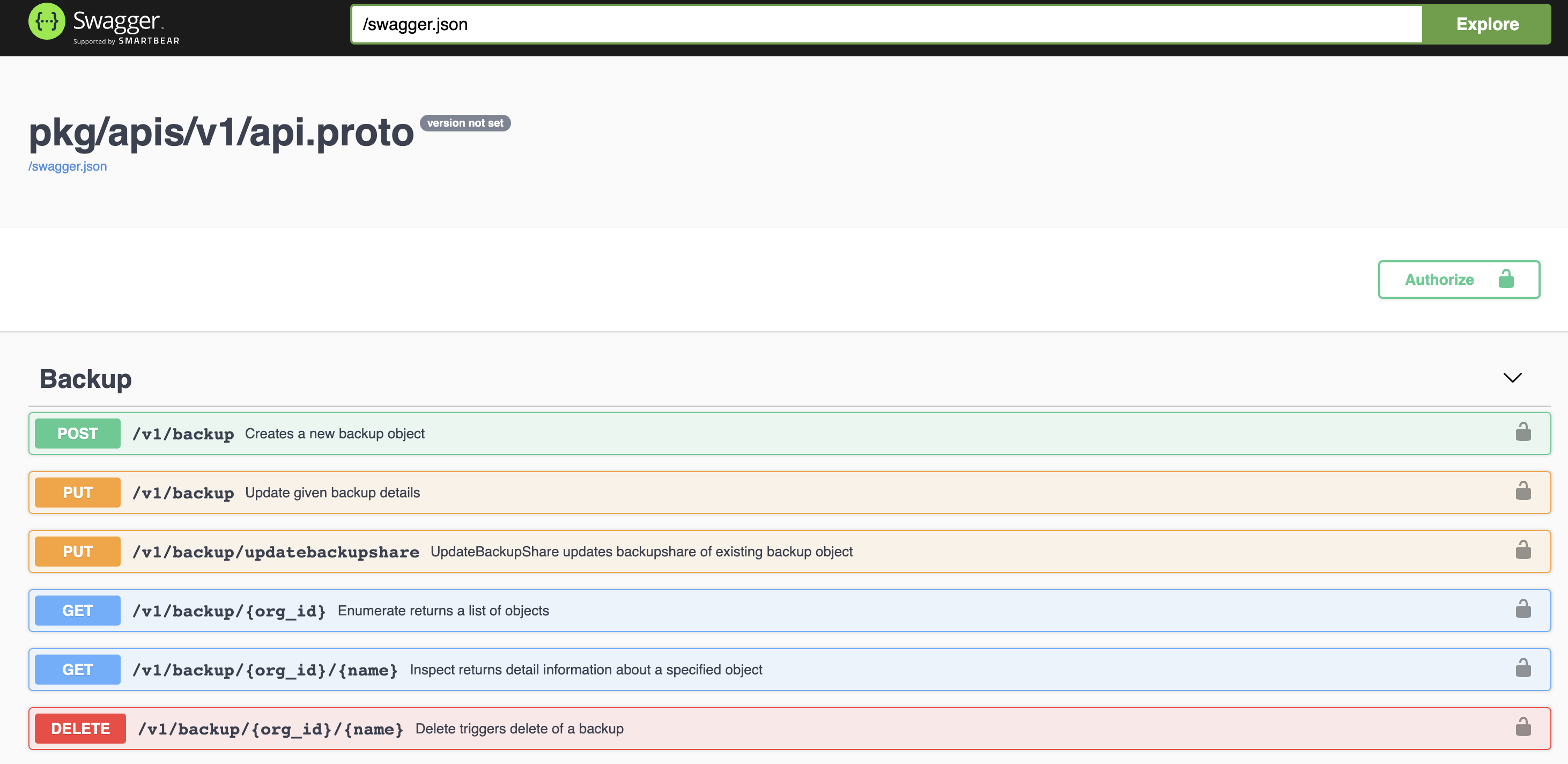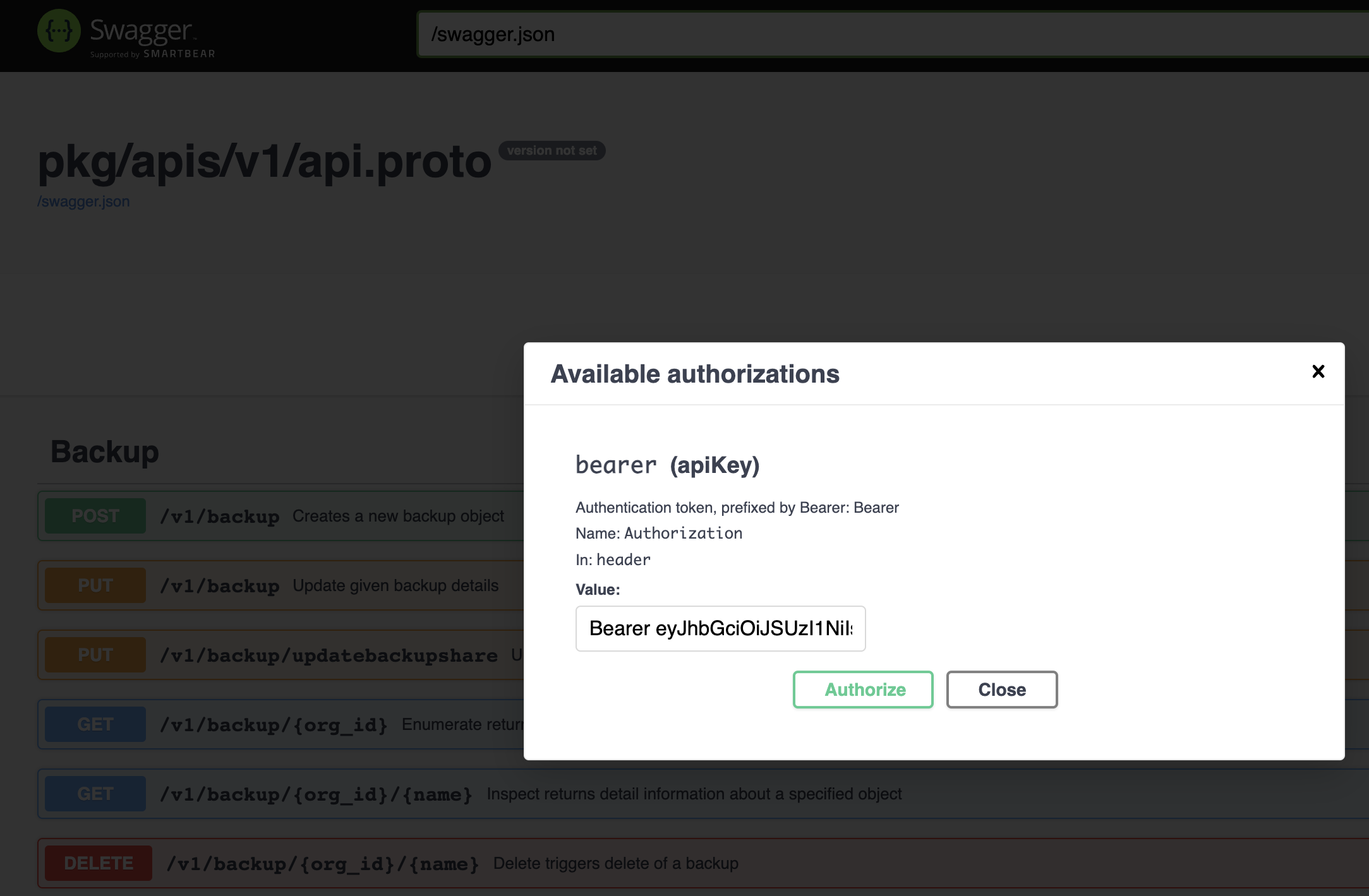 Click Authorize on the Swagger UI page.