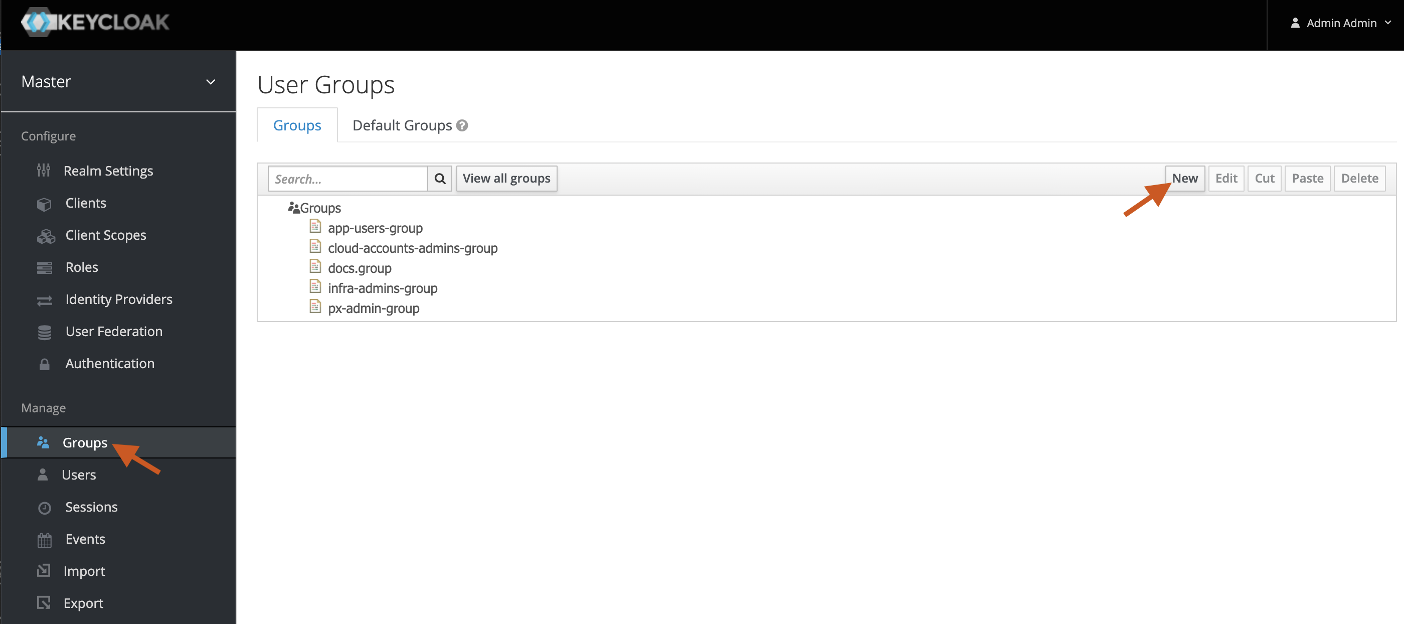 To add user groups using Portworx Backup Keycloak:
