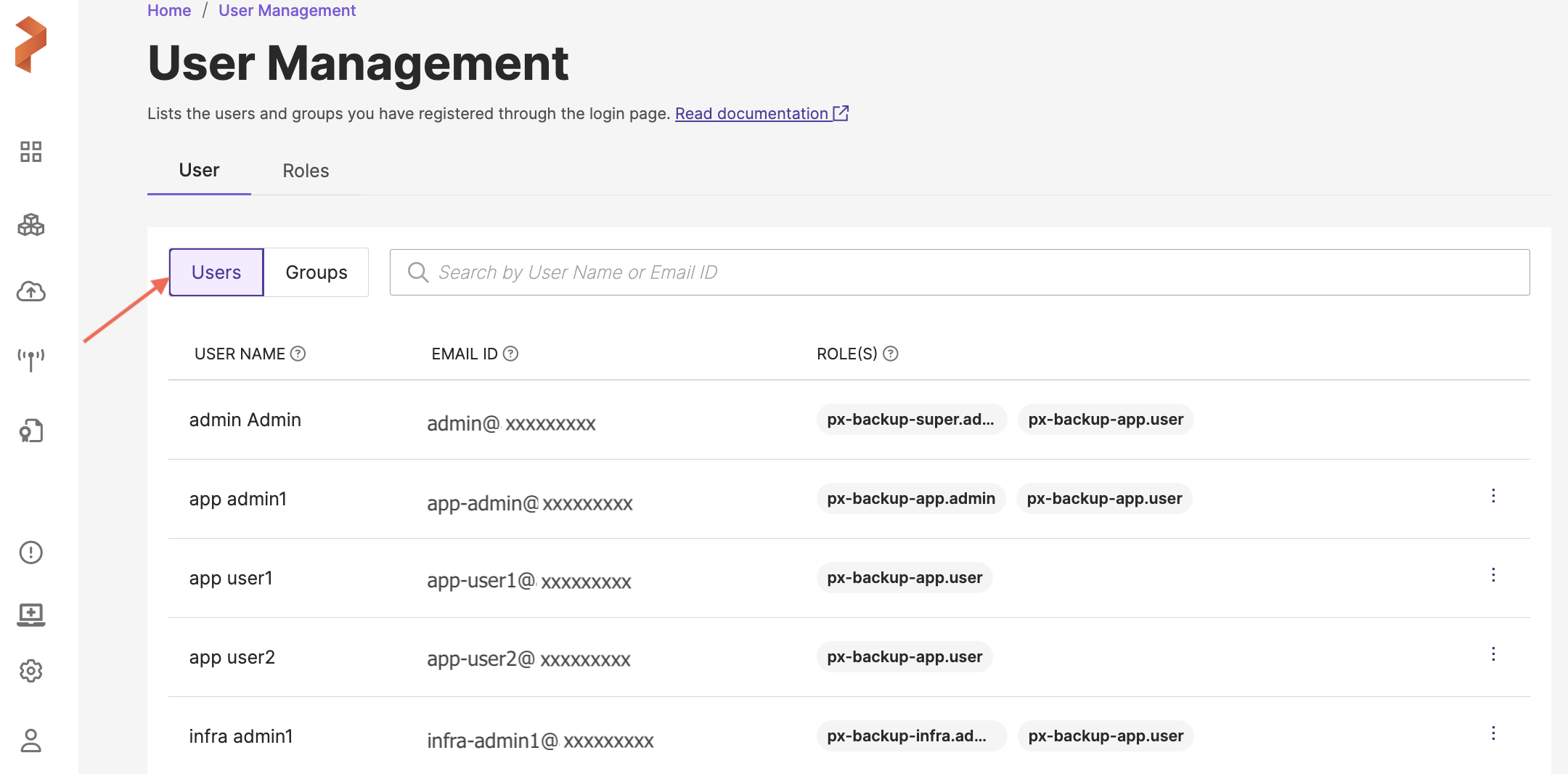View users in Portworx Backup User Management