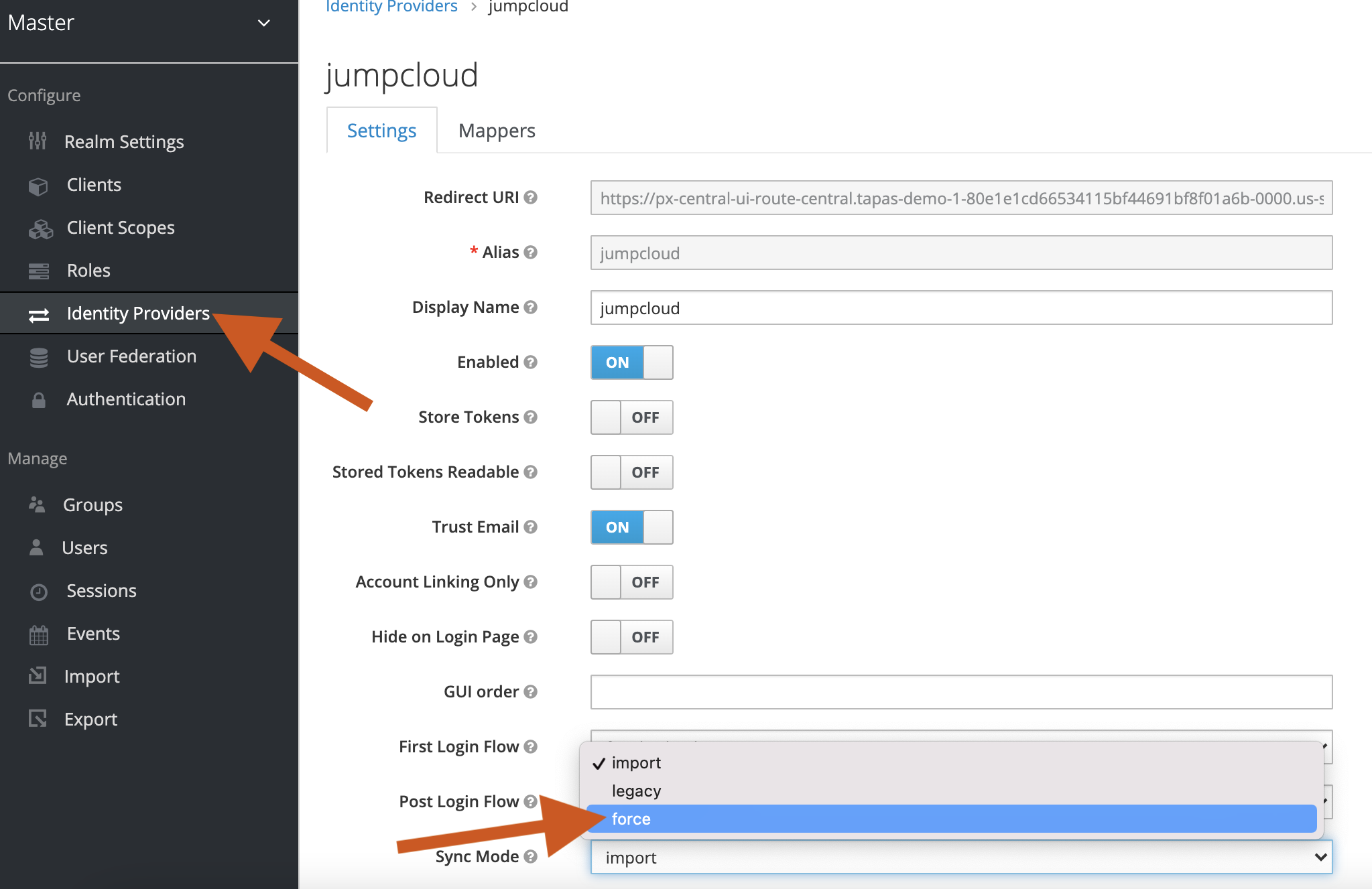 forcefrom the Sync Mode dropdown list, and click Save.