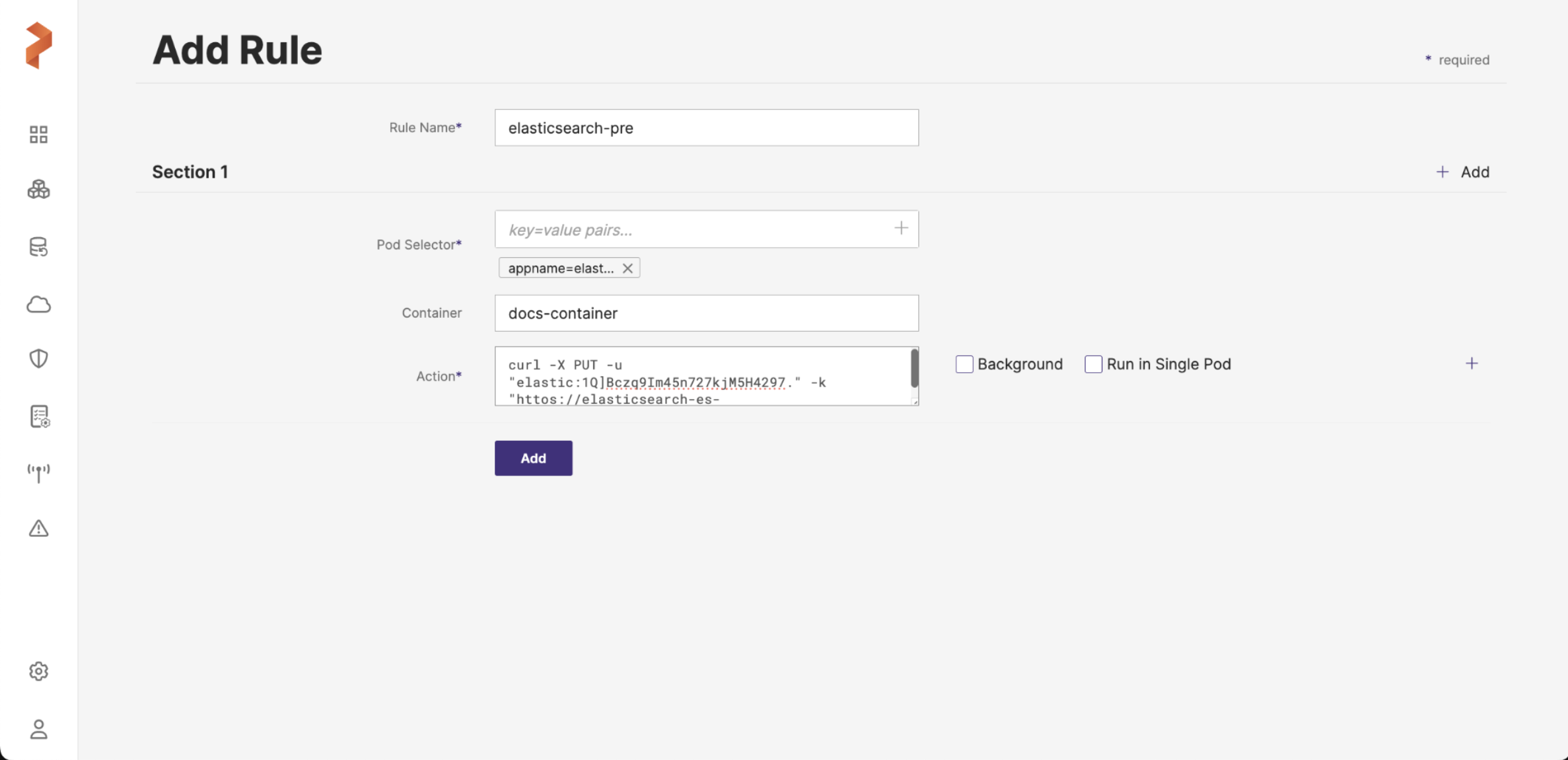 elasticand password specific to the environment. You will need to modify the rule to use your username and password for your environment. -