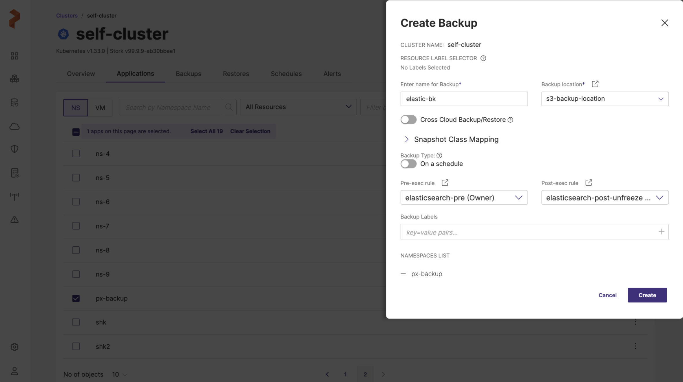 You can use the instructions on this page to create pre and post backup rules with Portworx Backup to take application-consistent backups for Elasticsearch on Kubernetes in production.