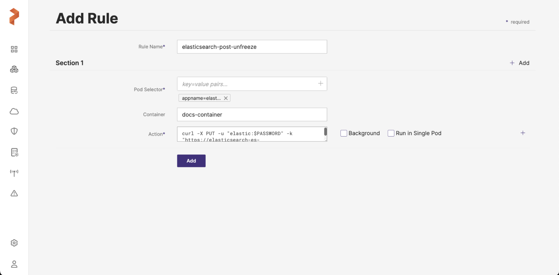 Create a pre-exec backup rule for Elasticsearch