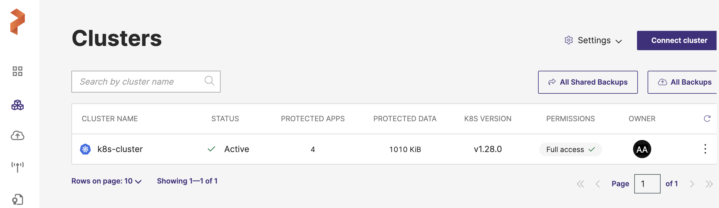 In the Clusters page, choose the application cluster that contains the backup you want to restore.