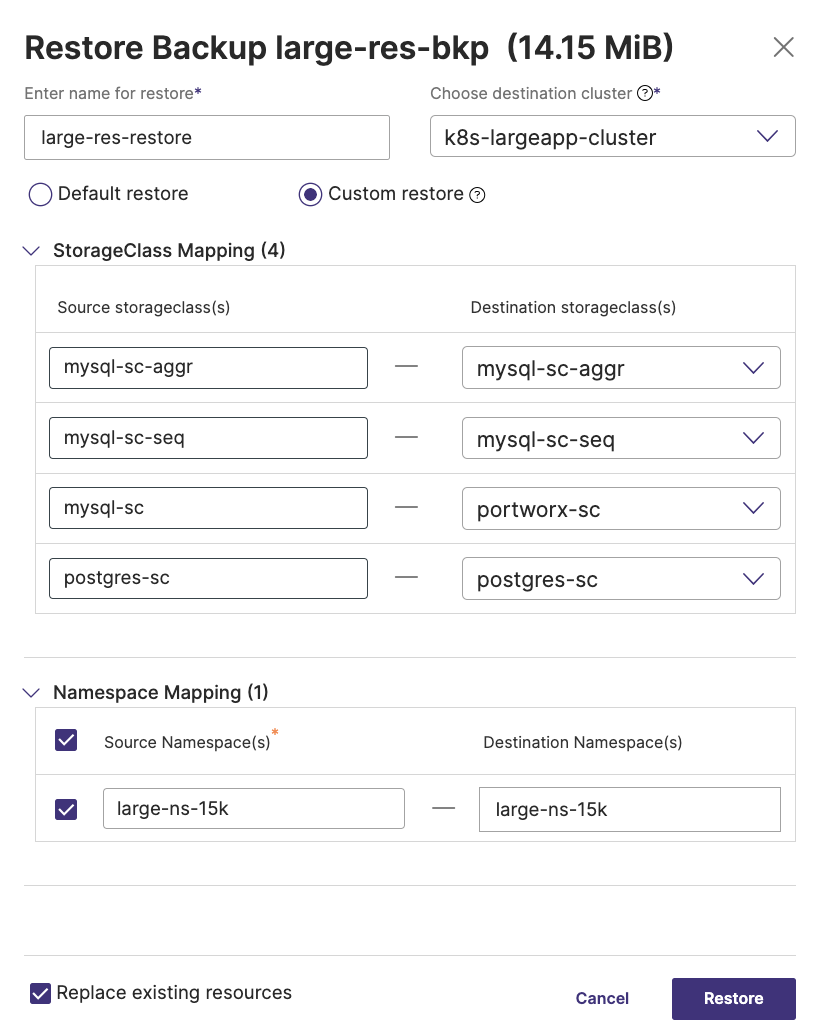 Portworx Backup allows you to restore backups of namespaces that involve large number of resources or resource sets.