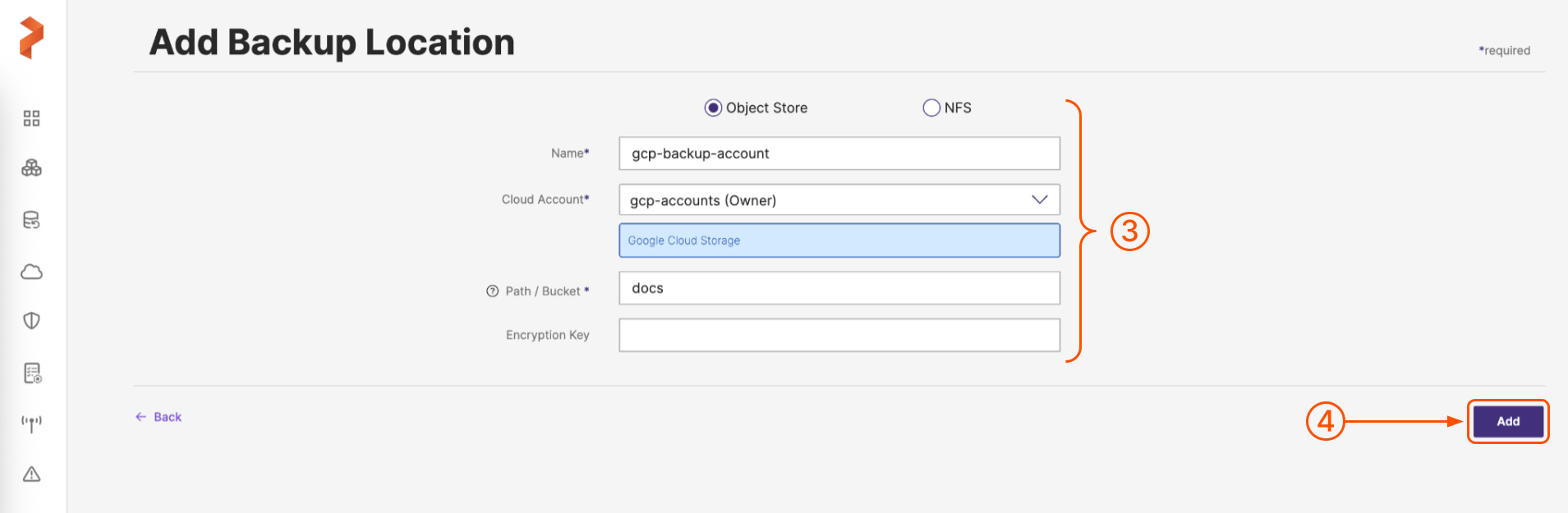 Add GCP Backup Location