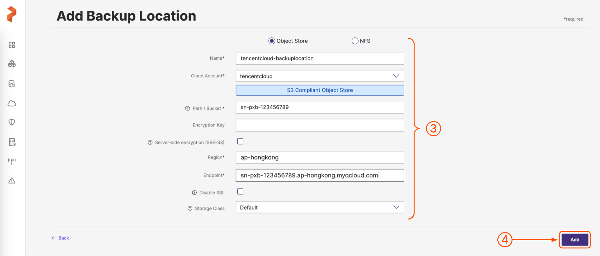 Tencent Cloud Object storage (COS) provides an S3 compatible storage service for distributed environments. Portworx Backup allows you to add a COS bucket as backup location allowing you to directly use the COS service.