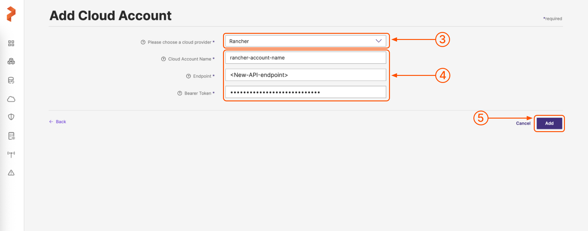 To add a Rancher cloud account: