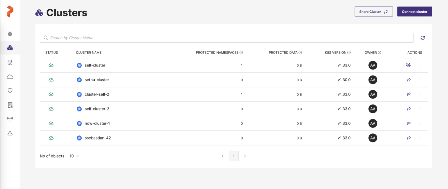 From the home page, click Clusters.