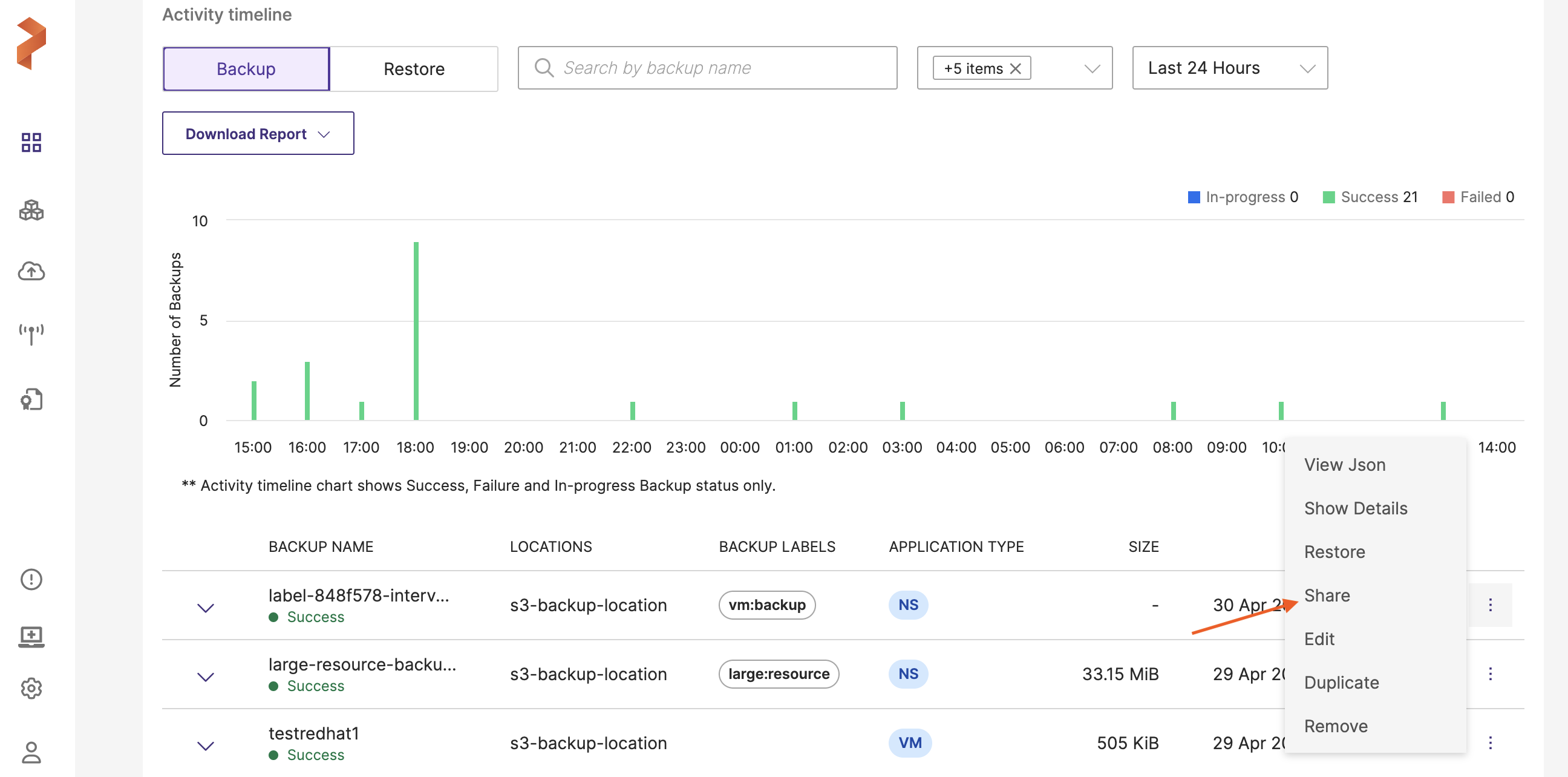 Click Vertical ellipsis at the end of the backup row and select Share.