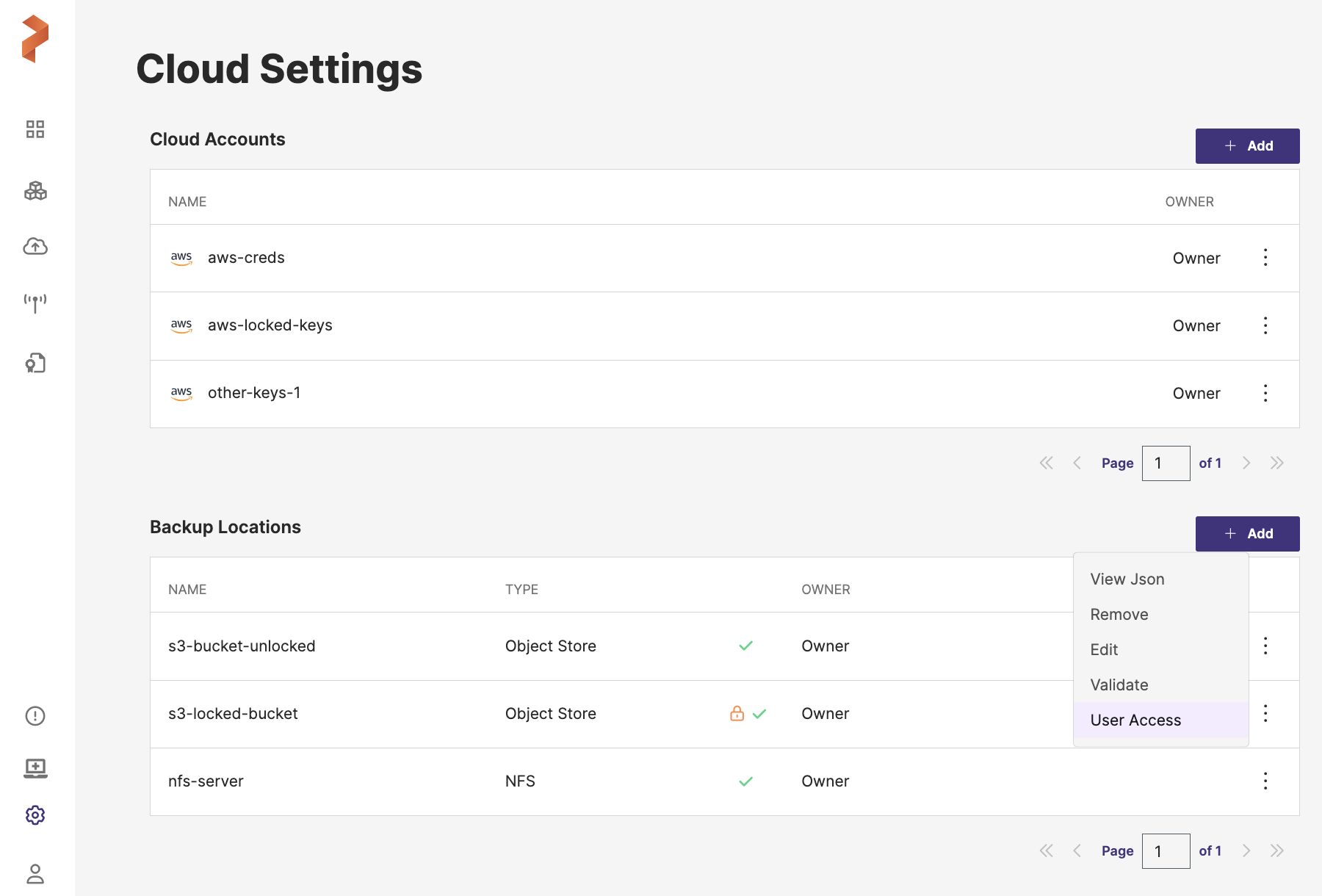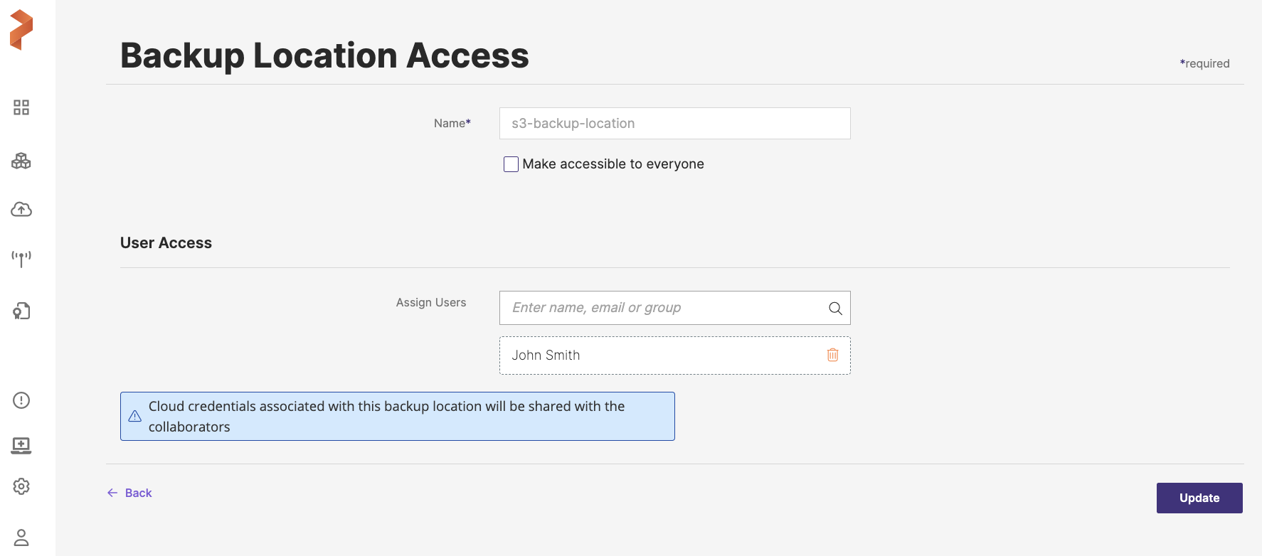 Note: Backup locations created using shared Cloud Credentials can now be shared with other users, provided those users already have access to the associated Cloud Credential