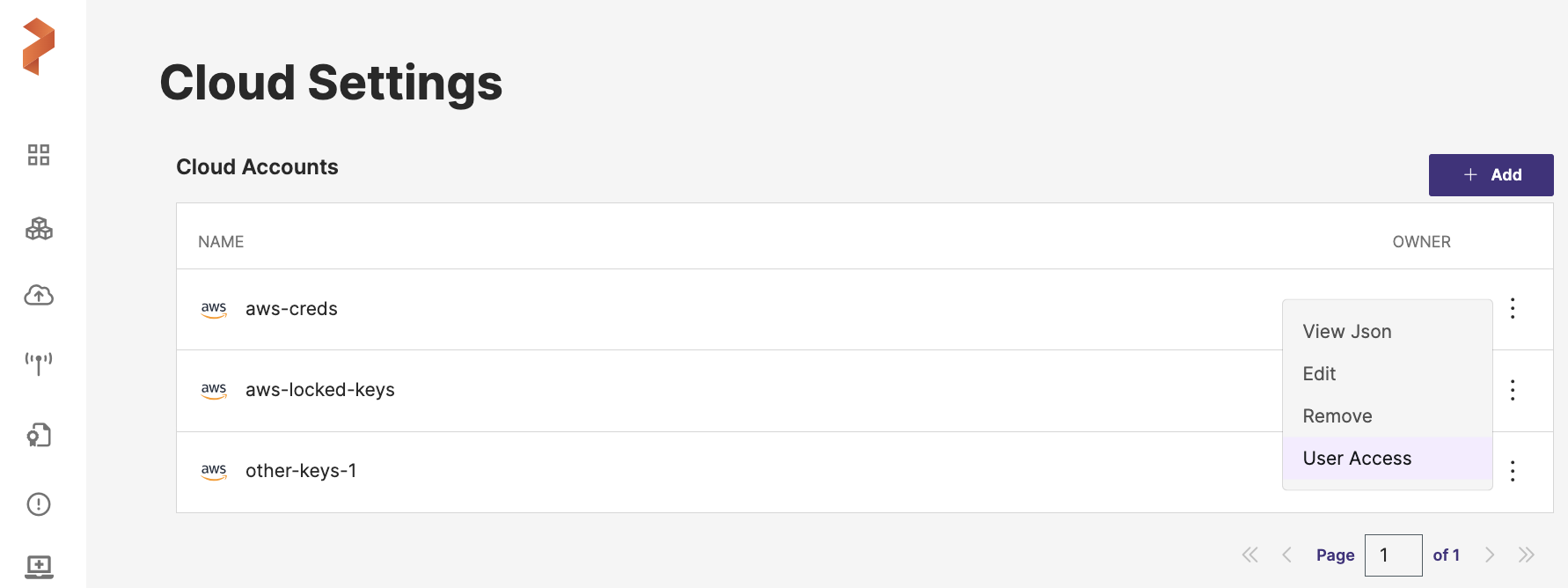 Select the Vertical ellipsis at the end of cloud account row and choose User Access.