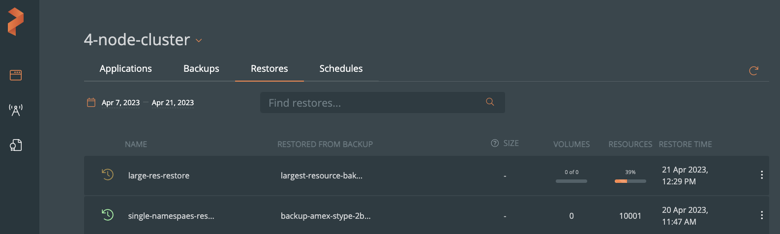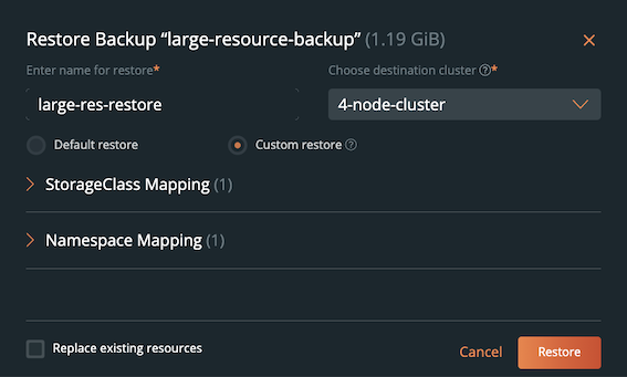 Portworx Backup allows you to restore backups of namespaces that involve large number of resources or resource sets.