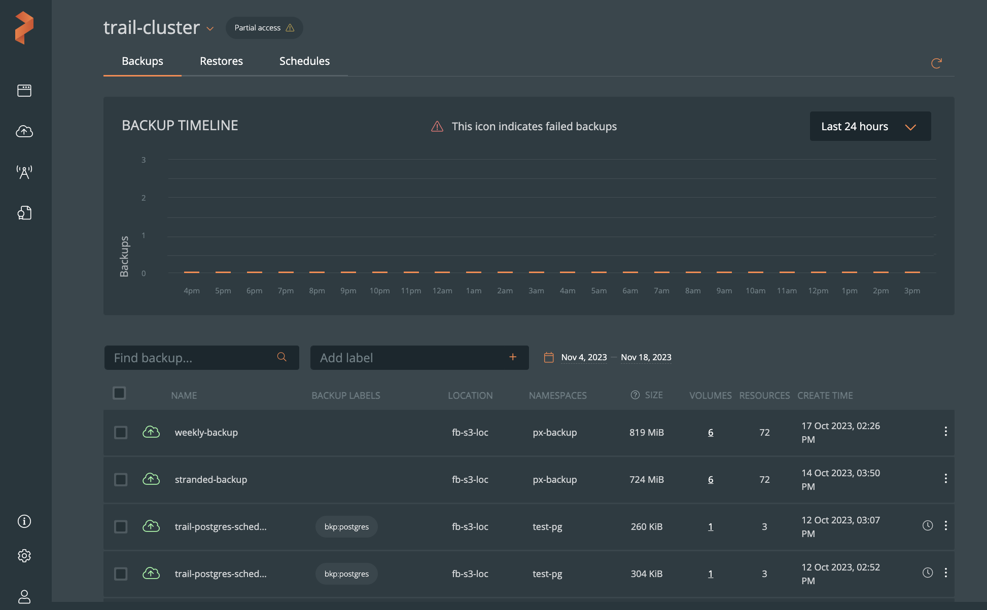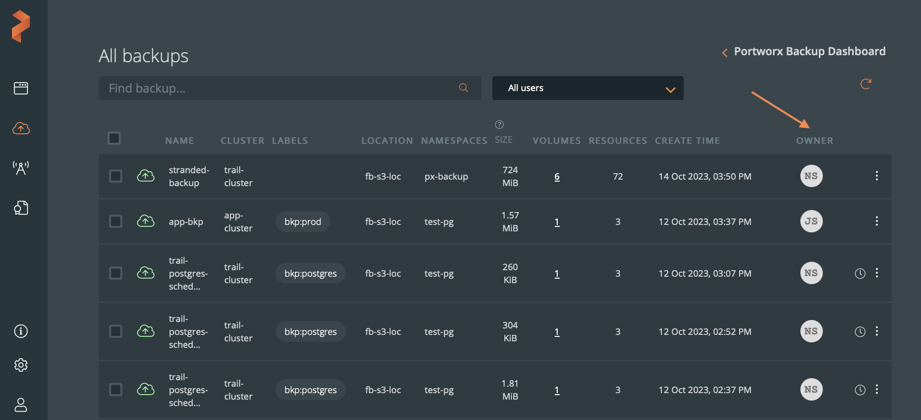 On the other hand, you can also delete the stranded backups by navigating to the backups from the cluster. To delete the backups that belongs to an owner from the cluster page, perform the following steps: