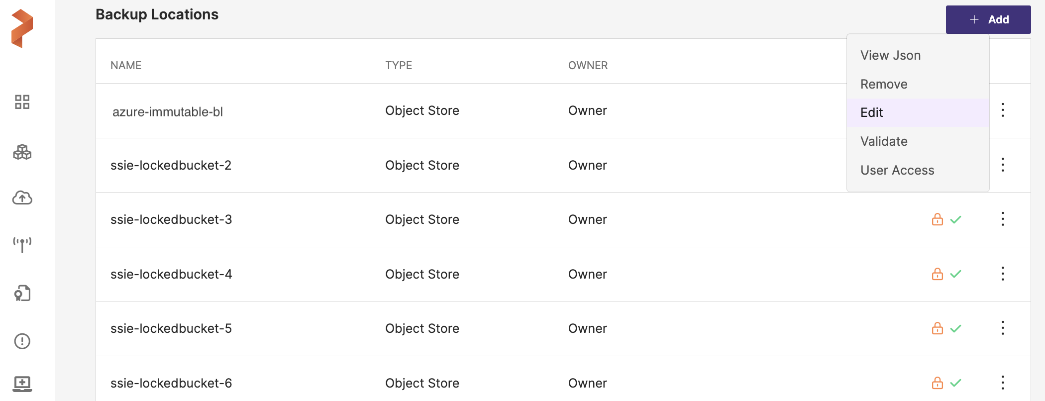 After you add an Azure immutable backup location, you can perform the following actions on the added backup location: