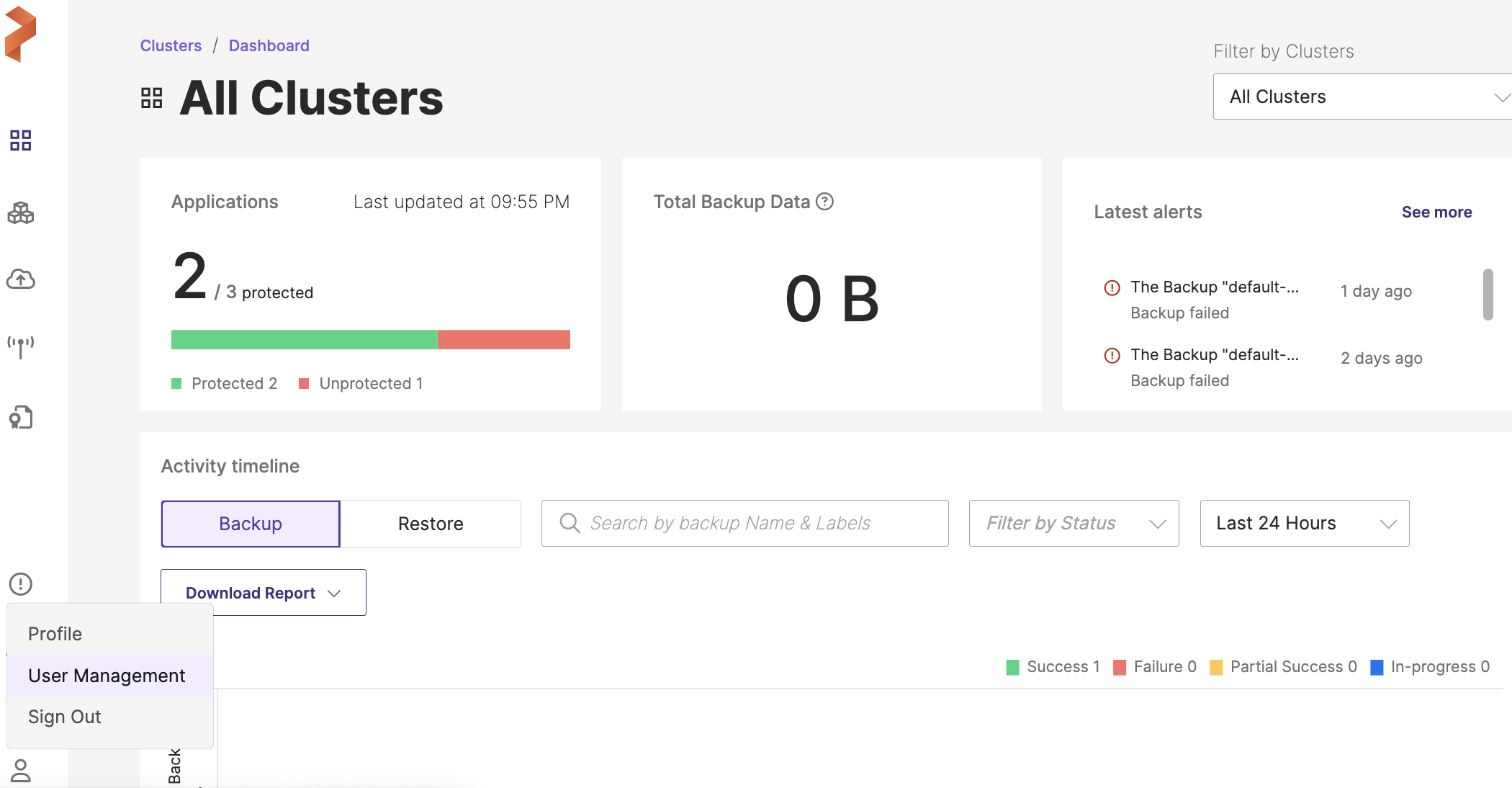 px-backup-super.admin: Full administrative access to manage backups and restore operations.px-backup-app.user: Limited user access, allowing basic operations like viewing and restoring backups.
