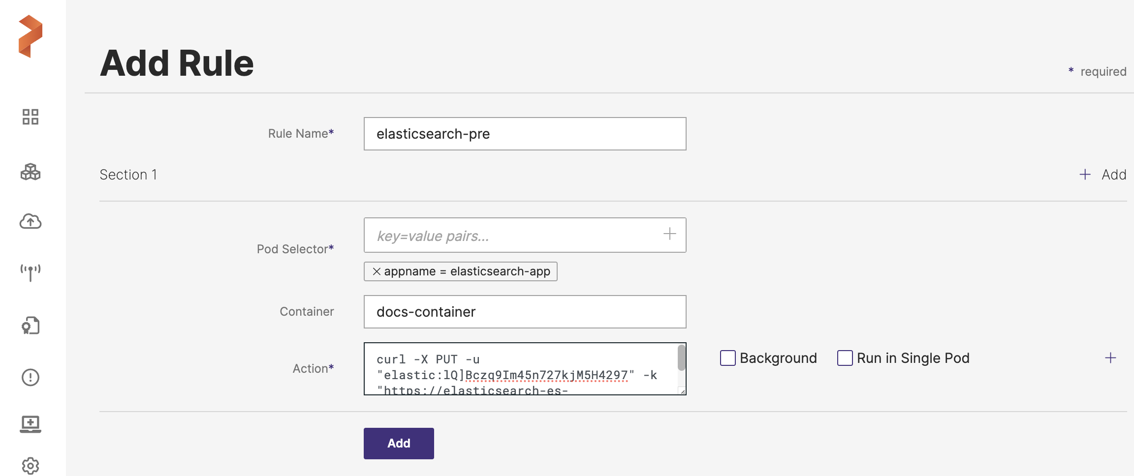 You can use the instructions on this page to create pre and post backup rules with Portworx Backup to take application-consistent backups for Elasticsearch on Kubernetes in production.