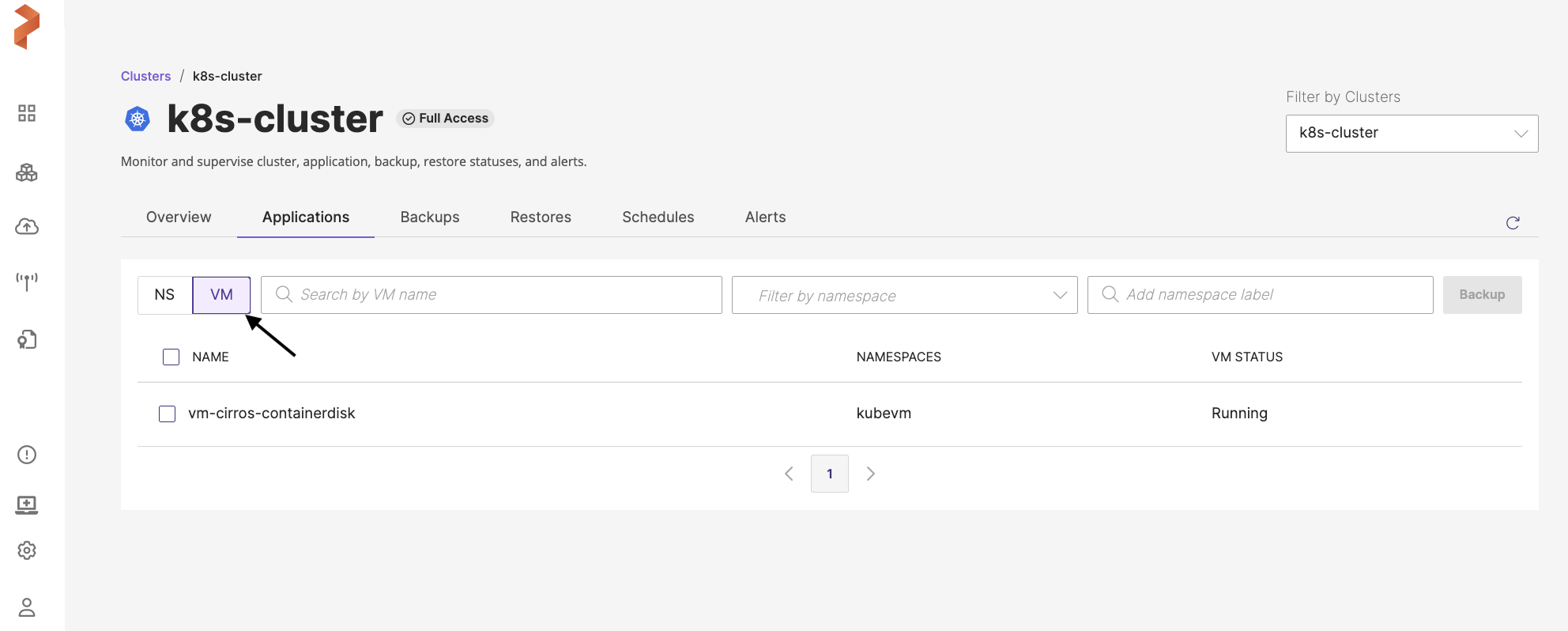 Portworx Backup creates a backup of your entire VM. To view the backup you just created, navigate to the Backups > VM tab from your application cluster page.