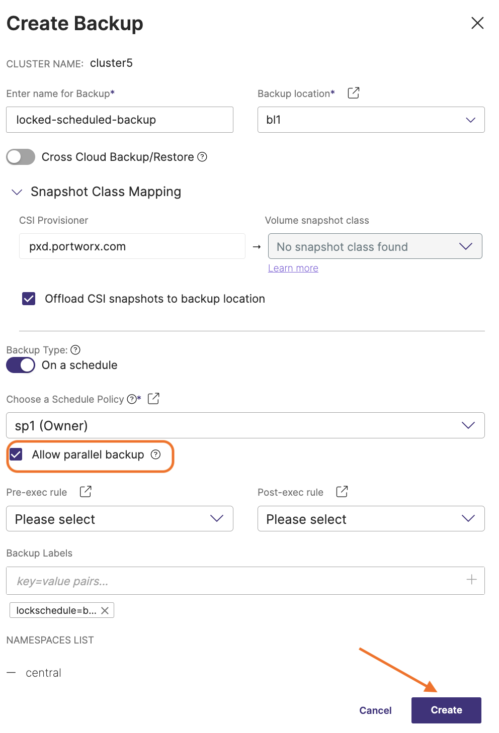 notePlease note that parallel backup option works for a backup object with Portworx volumes only.
