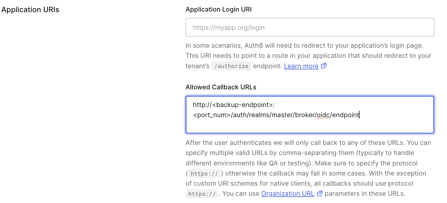 http://<backup-endpoint>:<port-number>/auth/realms/master/broker/oidc/endpoint