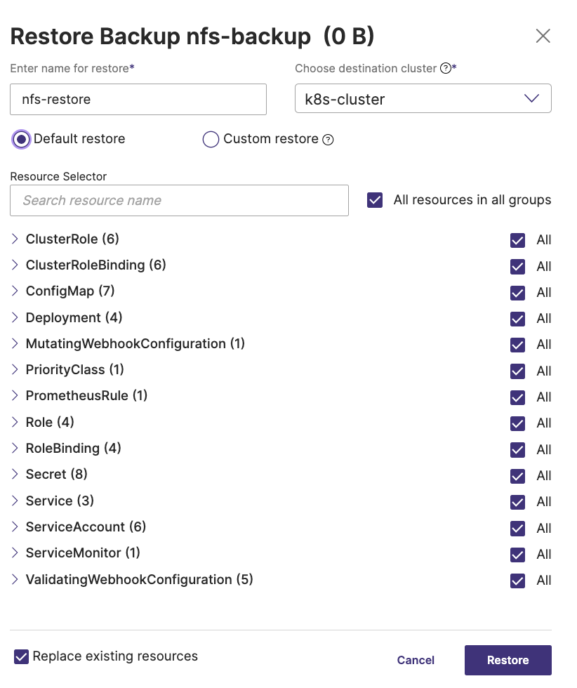 Portworx Backup lets you to back up your application data on an NFS share and then to restore the required data later from those shares.