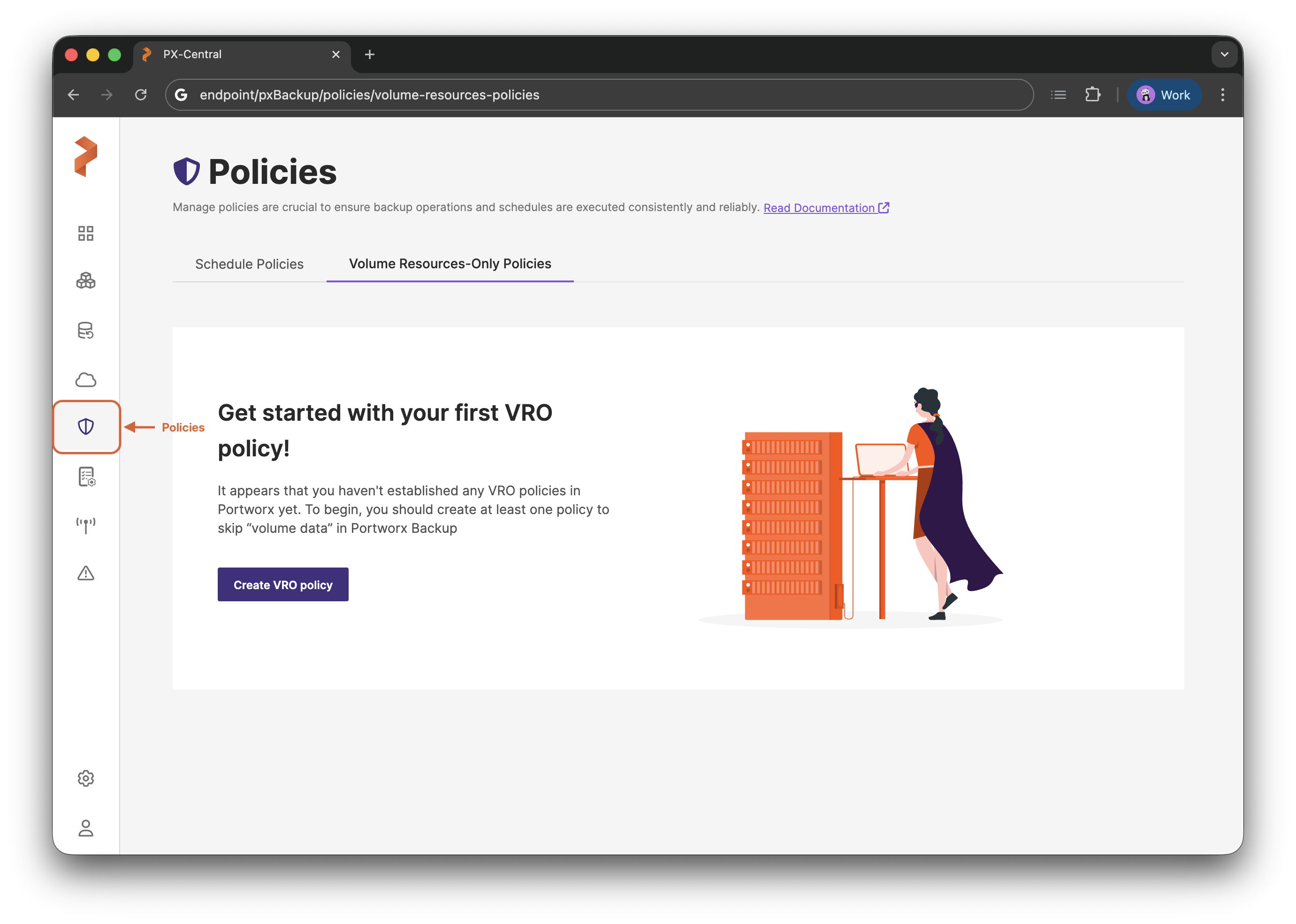 Learn how to manage Volume Resource-Only Policies in Portworx Backup, including how to create, edit, share, and remove policies.