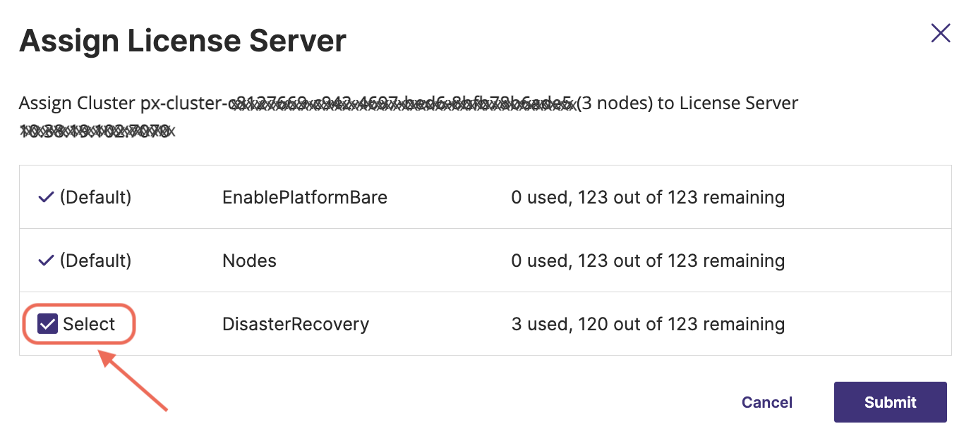 Portworx Central enables you to assign an existing license on your license server to a cluster. To assign a license to the cluster:
